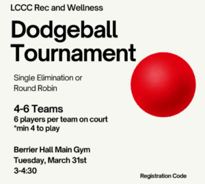 Thursday, March 26, from 11 a.m. to 1 p.m. in the Aux Gym (LCCC Schnecksville campus)