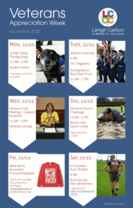 LCCC’s Veterans Events Committee has put together a variety of events to celebrate Veterans Appreciation Week this November! Join us all week in celebrating our Veteran and Military-affiliated student population. All events are open for anyone, student or staff, to attend. If you have questions or would like to support the Veterans Club by purchasing a R.E.D. shirt or bracelet, please reach out to Alex Maaser (amaaser@lccc.edu).