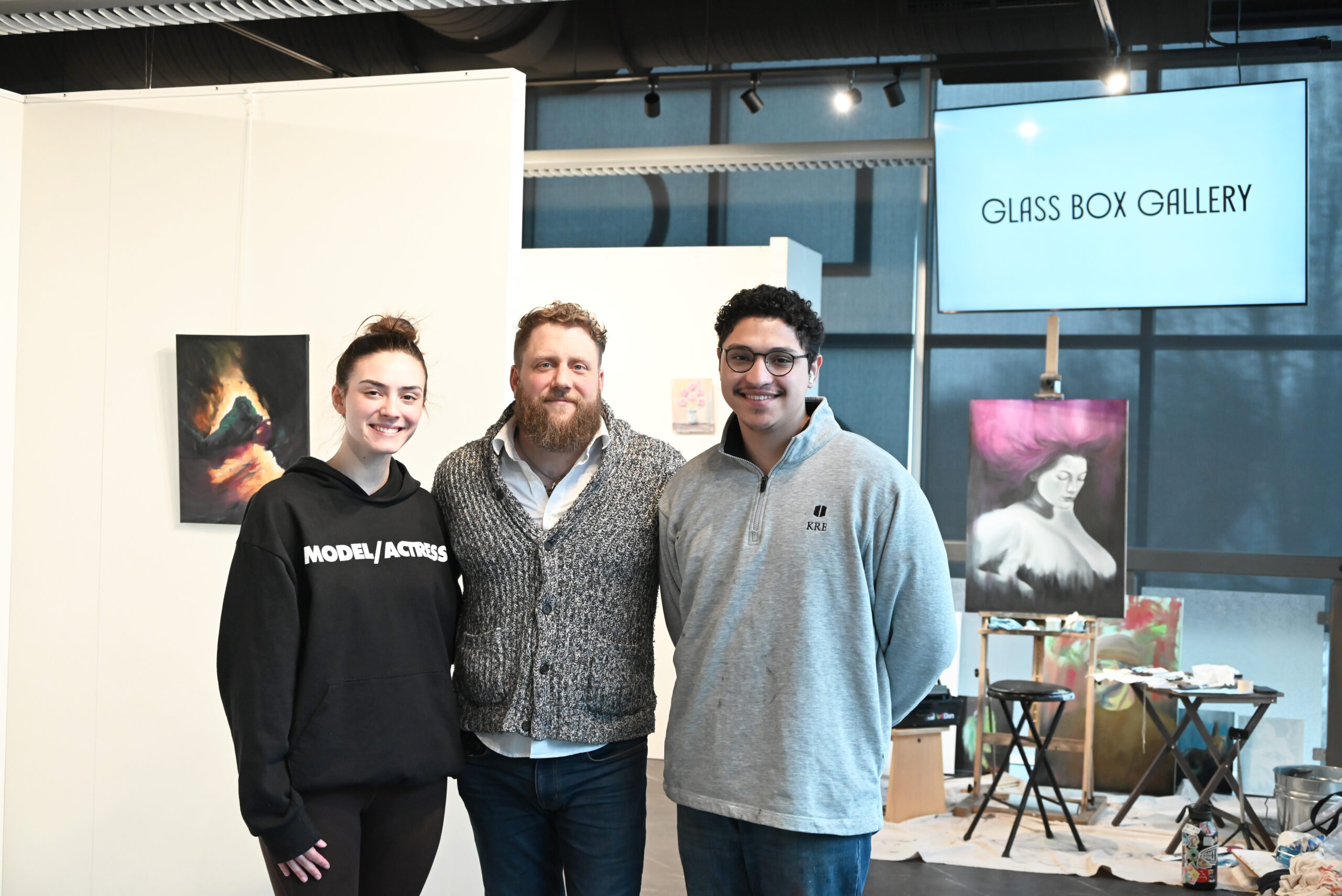 “We aim to host one exhibition each month,” Siedt says. While other galleries only host quarterly exhibitions, the Glass Box Gallery has aimed to create a constant flow of exhibitions monthly. Siedt ensures the students have ample time to learn the ins and outs of what makes an art show tick. Students not only get the opportunity to be featured in shows with the opportunity to sell their art, but they’re also working behind the scenes by planning, curating, promoting and more. Alex Ho, Alice Frank and Bronwyn McKee are the current gallery student workers and driving force behind each exhibition. “Their dedication to this gallery, this student body, is unmatched,” Siedt says. “Students have the opportunity to learn and grow as an individual, an artist and a workforce member through the gallery.”