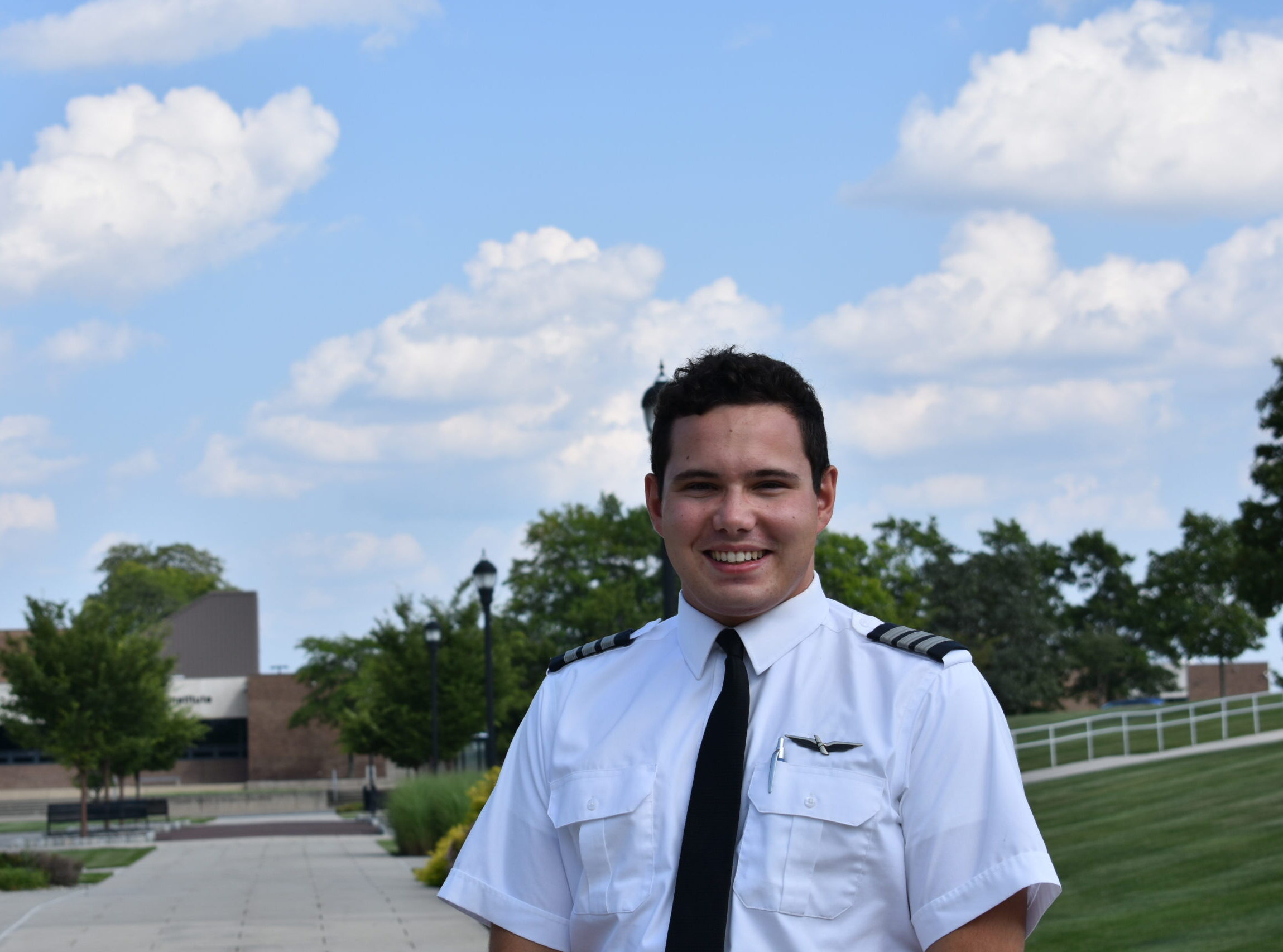 Image shows Nate Steigerwalt smiling on the main campus mall area.Steigerwalt underscores the significance of LCCC’s unique standing as a 141 program. Schools with a 141 certification foster a connection with the Federal Aviation Administration by following a federally approved and regulated syllabus. Steigerwalt expressed the rarity of government-affiliated programs in higher education and shared how valuable this was for him. As a 141 school, LCCC provides an advantage that enables students to accrue fewer overall training hours while maintaining the standards required for piloting at commercial airlines. LCCC’s status as a 141 school also helped Nathan obtain a career with PSA Airlines before meeting his hourly aviation requirements. “They scoop up people – especially out of 141 schools like LCCC because they know exactly what type of training that you have.”